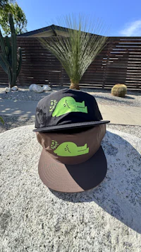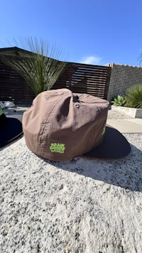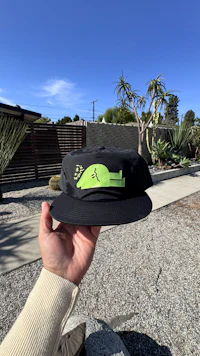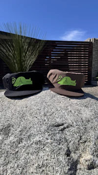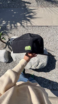 The hats are lightweight recycled nylon with a relaxed snapback fit.